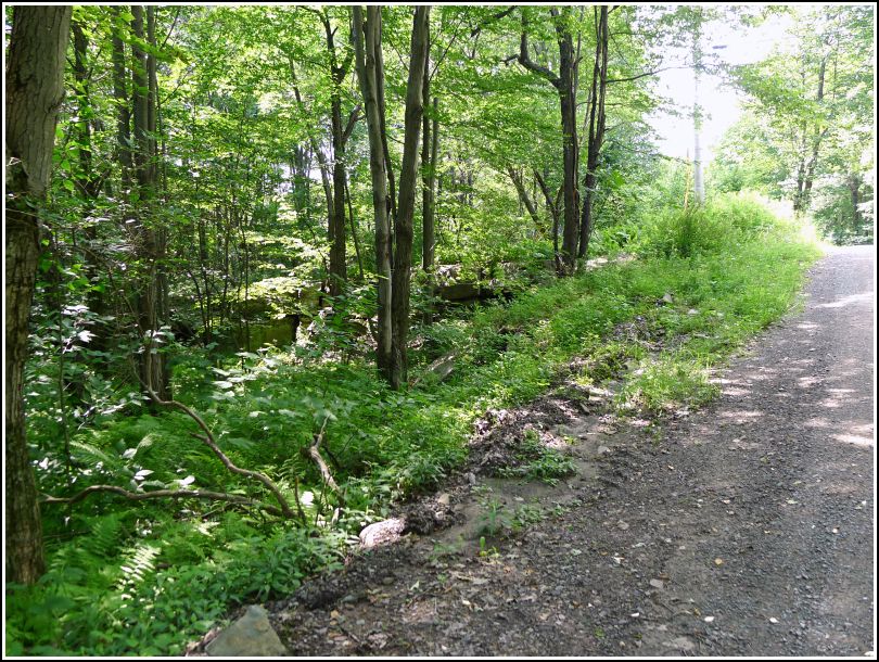 This is our third consecutive weekend visiting the Waymart area for USGS benchmark hunting (… and pizza and BBQ from the Waymart Hotel). We haven’t come close to finding all of them yet! This area is rich in benchmarks, and also rich in railroading history. For years, Rich and I have read everything we could find about the local gravity railroads and have explored many of the old lift planes and structures of the Pennsylvania Coal Company’s gravity railroad on the Moosic Mountains near Dunmore. The last few weeks’ explorations have put us further east, in the territory of the Delaware & Hudson’s gravity railroad. I was so excited to see a benchmark description that actually mentioned the D&H Gravity and referred to the ice trade on Keen Lake. I spent the week in anticipation, fully aware that the area is now full of cottages and campsites. I didn’t really expect we’d find anything, but I had to look.